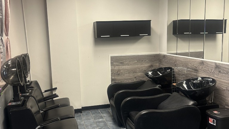8 fully equipped styling stations (mirrors, chairs, storage)