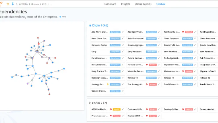 AEGERIA is a SaaS-based enterprise-grade business management platform that provides executives full transparency into the cross-functional dependencies required to drive their desired business outcomes. Developed by executives, for executives, AEGERIA was designed to integrate and provide transparency into the status of business targets and outcomes, giving the user unprecedented access into, and control over, an organization's strategic drivers.