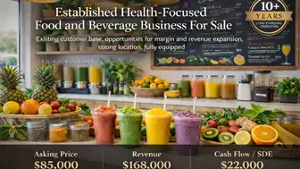 This established juice, smoothie, and sandwich bar offers a turnkey, health-focused food and beverage concept with demonstrated operational stability and consistent cash flow. Founded in 2016 and...